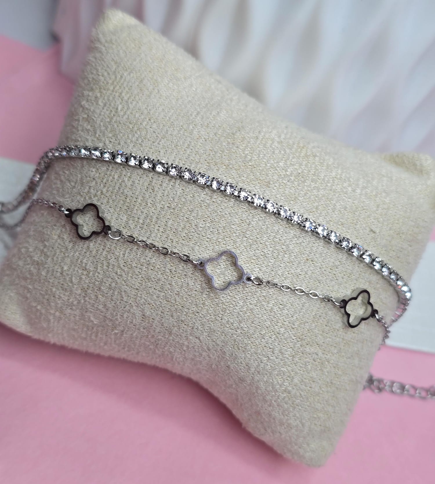 SKU pulsera-doble-trebol-plata-107 Categorias: ,